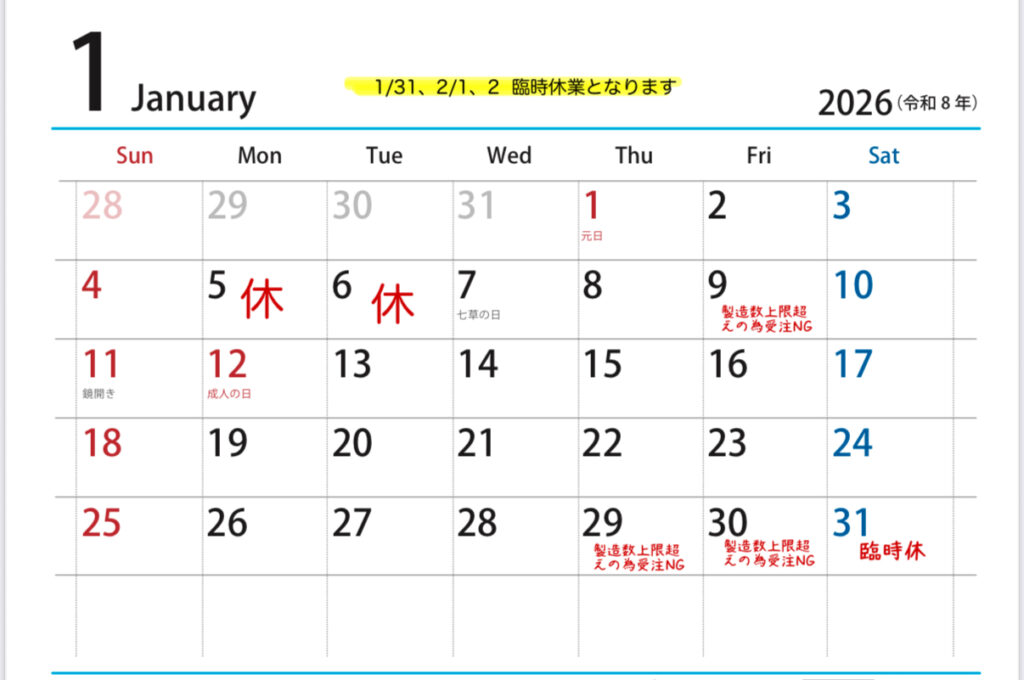 1月のお知らせ