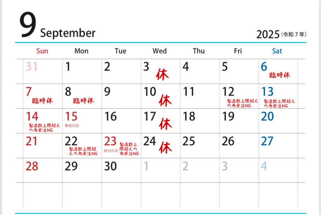 9月のお知らせ